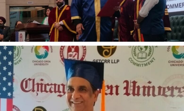 ए.पी. पाठक को शिकागो ओपन यूनिवर्सिटी से मिली डॉक्टरेट की मानद उपाधि..
